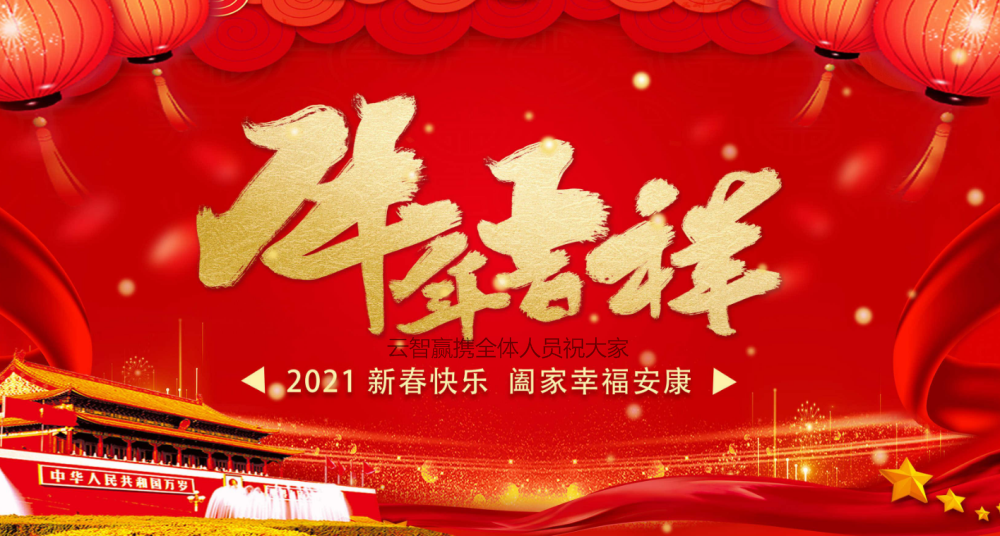 在2021新春佳節來臨之際云智贏攜全體員工;向長期以來關心、支持云智贏發展的客戶們及所有的朋友們;致以新年的祝福和誠摯的謝意!祝大家在2021年,牛年大吉、萬事如意!